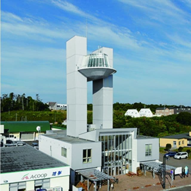 雄武町市街の中心部にあり、ビルの7Fに相当する高さにある展望台に上ると雄武の町が一望でき、さらにオホーツク海も見渡すことができます。下から見るとご当地の名産品ホタテにも見えますが、実は宇宙船をイメージして作られた建物。遠くからも目立つ建物なので、雄武町に来たらまずはここに立ち寄り、展望台から自分の目で雄武町のロケーションを確認すると良いでしょう。一階には「いっぷく屋」という売店もあり、雄武町の特産品を購入したり、名物の「ダッタンそば」を食べることもできます。(冬季はお休み期間で4月中旬がオープン。10月末日まで営業しています。営業時間は9:00~17:00。土日も休まず営業しております。)道の駅の開館時間は5月~10月は8:00~21:00、11月~4月は8:00~20:00となっております。多目的トイレもあります。