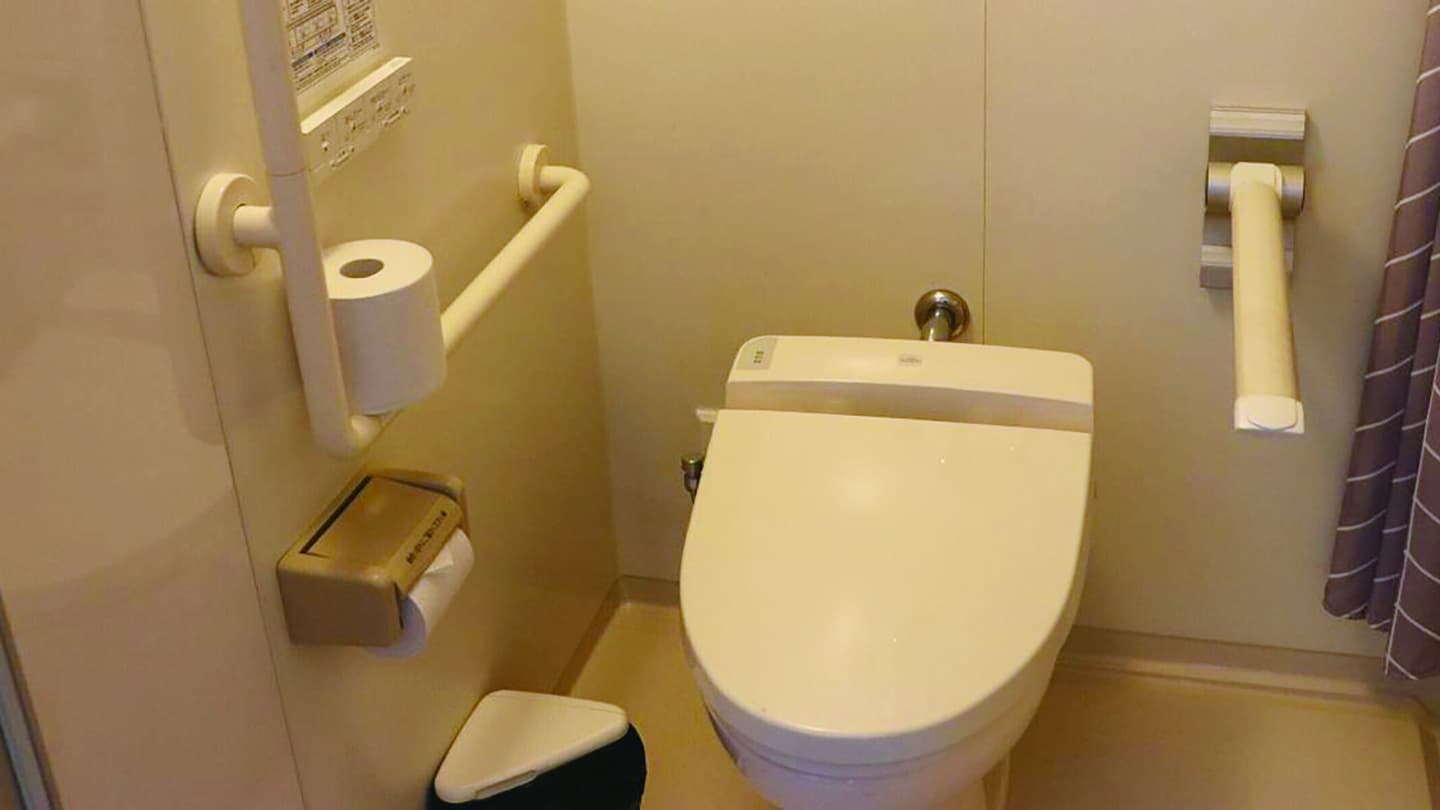 客室内のお手洗いも入口は広く設計されております。