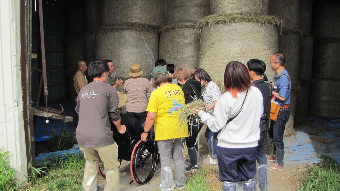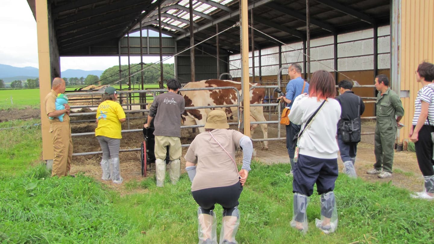 車いすをご利用の方など牧草地に入るのが難しい場合も、子牛舎の見学や牧草ロール、トラクターなどの機械の見学など楽しむことができますので、ご相談ください。