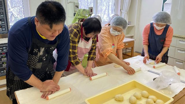 パン作りはとても時間がかかりますが、最初の捏ねと1次発酵は済ませて、皆さまには成形と2次発酵から参加していただくので初めての方でも気軽に体験していただけます。親子での参加も歓迎。館内は段差がなくフラットで、車いすの方にはローテーブルを用意しますので、お申し込み時にお知らせください。