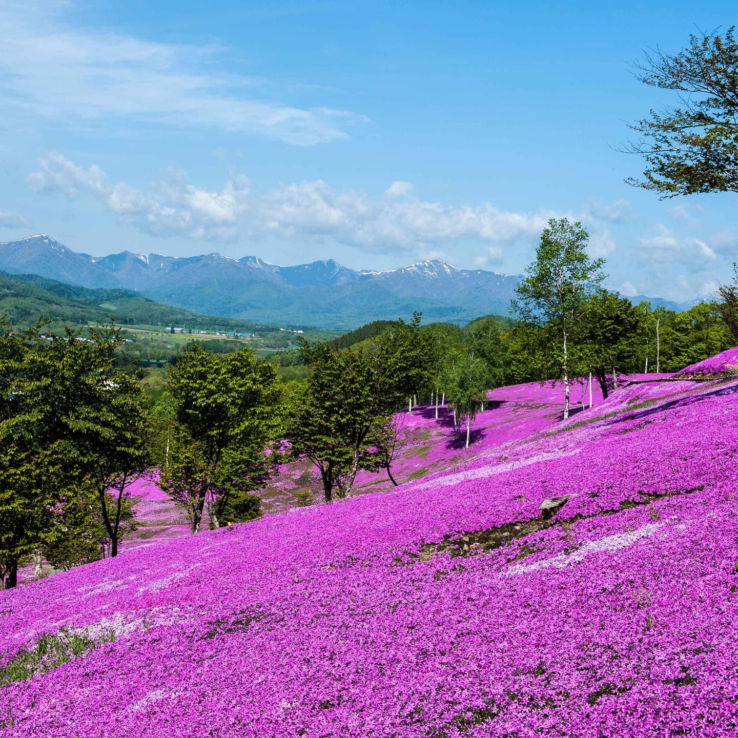 滝上町の魅力を語る上で外せないのは5月上旬から下旬にかけて「芝ざくら滝上公園」 に咲き誇る芝ぎくら。ミカン箱ひとつ分の苗からスタートした芝ざくらは、60年以上かけて日本最大級の10万平方メートルの大群落になりました。斜面一面に広がる芝ざくらはまさに圧巻の一言。町中に広がる芝ざくらの甘い香りもぜひ現地で味わって!