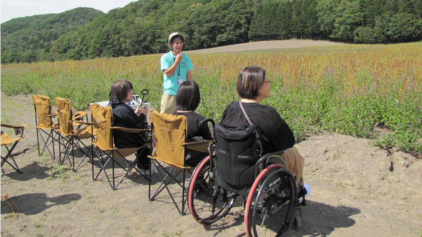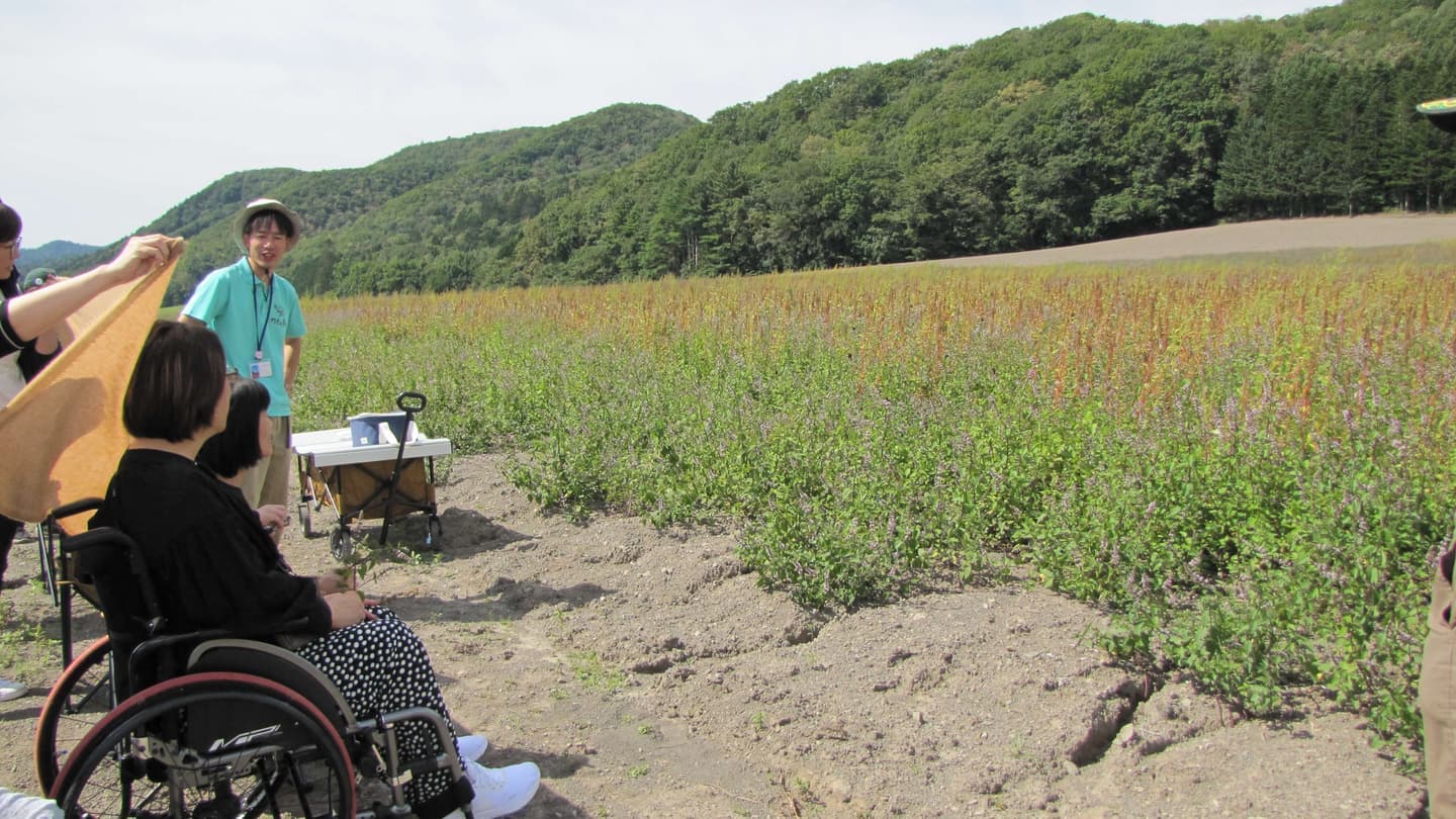 様々なお客様を受入れていく中で、町の特長でもある香りは、視覚障がいのある方に特に評判が良いです。ハーブの花の上でのヨガや、木や森、和ハッカなどの香りのある自然を案内することで、色味や風景、様々なイメージがふくらむと喜こんでいただいています。